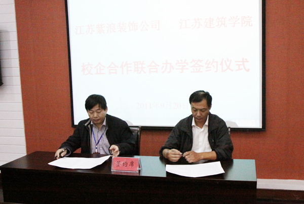 9月20日,我校与江苏紫浪装饰装璜有限公司在视频会议室举行校企合作办学签字仪式,我校张登宏副院长、紫浪装饰装璜有限公司严俊总经理共同签署合作协议。根据协议,双方在“互助互信、双向介入、优势互补、资源共享、共同开发”的基础上,依托我校装饰专业共同建设“紫浪班”,订单培养建筑装饰人才、共同开发装饰相关课程、建设装饰专业实习就业基地以及在科研合作、企业员工培训等领域展开全面合作。紫浪公司还设立专项“紫浪班”奖学金奖励品学兼优的学生。