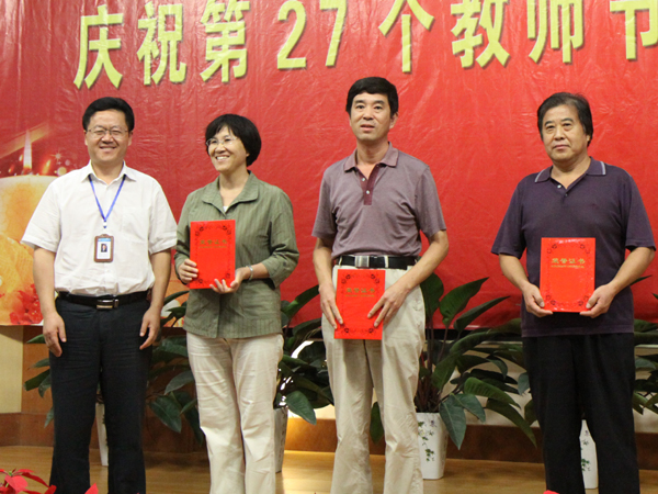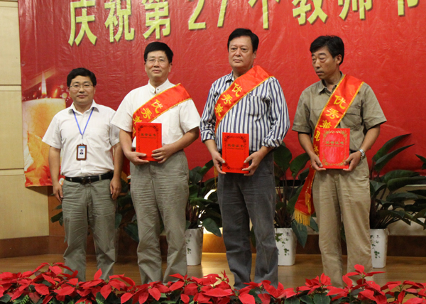 吴光林为优秀教师颁奖 吴光林为优秀教师颁奖 任留钦为优秀教育工作者颁奖 任留钦为优秀教育工作者颁奖 张登宏为优秀辅导员颁奖 张登宏为优秀辅导员颁奖 沈士德为优秀兼职教师颁奖 吴光林发表重要讲话 任留钦宣读表彰决定 季翔主持表彰大会 武荣权老师发言 孙武老师发言 黄梅老师发言 王彬馨同学向教师节献词 全体校领导、师生代表参加了表彰大会