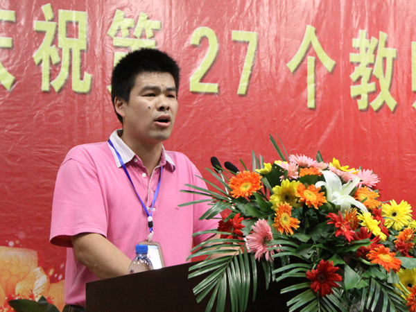 从事教育工作满五十周年的武荣权老师、优秀教师代表建工学院孙武老师、优秀辅导员代表设备学院黄梅老师分别发言。学生代表经济管理学院王彬馨同学向教师节献词。