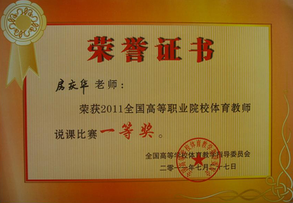 7月26日-28日,由全国高等学校体育教学指导委员会主办,江苏省教育厅、南京信息职业技术学院承办的全国高职高专体育教师说课比赛圆满结束,我校体育部房庆华老师经江苏省初赛推荐,全国预赛晋级以及决赛现场说课三轮比赛,凭借他扎实的教学功底、流利的讲解、精美的课件制作赢得评委专家的一致好评,从来自全国20余个省市200余名选手中脱颖而出,获得一等奖的好成绩。