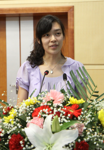 优秀共产党员代表建筑工程管理学院教师冯郁馨宣读倡议书
