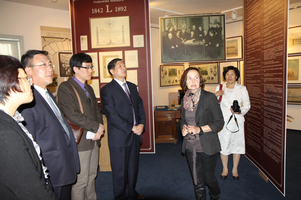 在俄罗斯期间,考察团先后考察了圣彼得堡国立建筑大学、莫斯科大学、圣彼得堡城市建筑群(世界文化遗产),参观了红场、二战胜利纪念广场、打响俄国十月革命第一炮的“阿芙乐尔”号巡洋舰、列宁故居、列宁纪念馆等重要场馆,瞻仰了列宁遗容。通过深入交流,与圣彼得堡国立建筑大学达成了加强交流和深化合作的意向。