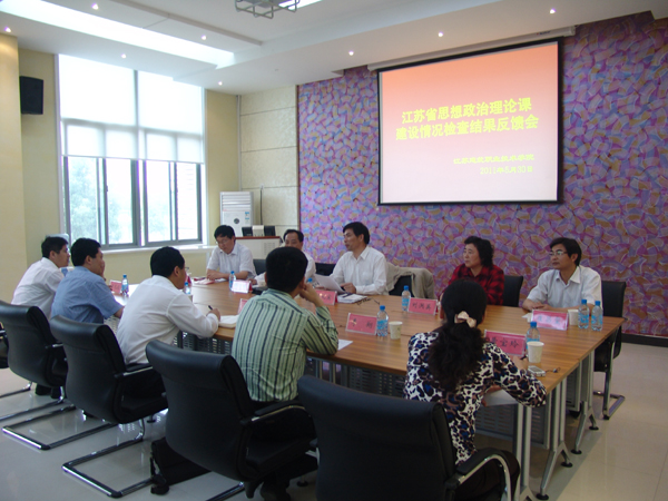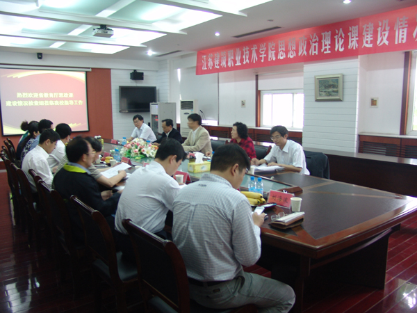 5月30日上午,学校召开思想政治理论课建设情况汇报会。以南通大学党委副书记、纪委书记杨礼宾为组长的江苏省高校思想政治理论课建设检查组一行5人,听取了汇报。院长袁洪志、党委副书记吴光林出席了汇报会。党政办、宣传部、学工处、科技处、财务处、校团委、思政部等部门、单位主要负责同志参加了汇报会。
