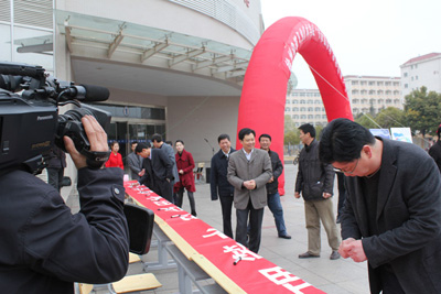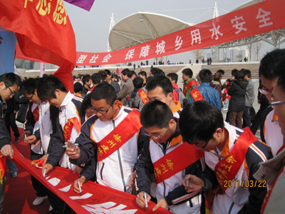 据悉,3月22日,市政工程学院50名学生代表参加了由徐州市水利局主办的纪念“世界水日”、“中国水周”宣传活动启动仪式,并在宣传横幅上签名。