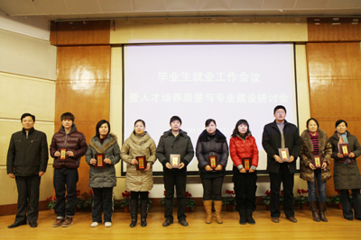 会议第一阶段进行的是2010年毕业生就业工作会议,党委副书记吴光林宣读表彰决定,对2010年招生和就业工作中表现突出先进集体和个人进行了表彰,同时首次对四个就业最佳专业和7名为毕业生落实就业岗位表现突出优秀教师予以表彰。副院长张登宏代表学校做2010年就业工作总结报告,副院长季翔主持会议。