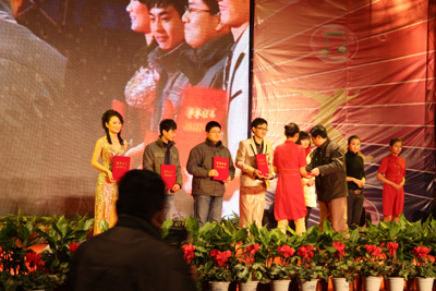 比赛结束,紧接着进行了团市委校园文化活动颁奖典礼,我校两家社团获得“十佳社团”,矿业工程学院的王喆同学获校园主持人大赛最佳才艺奖。