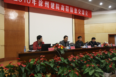 徐州市招生办公室主任宋广良、我校副院长季翔分别致辞,我校副院长张登宏主持会议,招就处处长华国平分别从我校历史与现状、办学条件与办学规模、师资队伍与教学能力、教育教学改革与专业课程建设、校企合作与社会服务、学生教育管理、招生就业工作等方面进行了全面汇报。