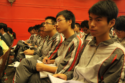 我校学生代表听取景荣春老师、耿高鹏同学先进事迹