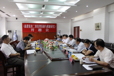 9月18日,江苏省学校党建研究会2010年重大课题《高职院校二级管理体制与机制研究》在我校举行开题报告会。会议由我校科技产业处处长韩成标主持。由江苏省学校党建研究会秘书长、南京师范大学党委组织部部长林耀林、江苏省委教育工委组织处副处长沈晓冬、江苏省学校党建研究会常务理事、中国矿业大学党委组织部部长蔡世华、南京师范大学党校常务副校长、党委组织部副部长崔欣伟、我校中国思想文化研究所所长张俊相组成的专家组和课题组全体同志参加了会议。课题组组长、我校党委书记王旭善为专家组介绍了学校情况,汇报了课题研究的目的、意义、内容、路径以及预期成果等。经过讨论评审,专家组一致认为该课题研究角度新,研究内容实,研究计划详,研究力量强,预期成果高,可以开展研究工作。