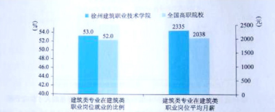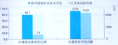 数据分析中“徐州建筑职业技术学院2009届毕业生在建筑行业就业的比例为40.1%,5倍于江苏省高职业院校2009届毕业生在建筑行业就业的比例(7.4%);徐州建筑职业技术学院2009届毕业生在建筑行业的半年后月薪为2326元,也略高于江苏省高职院校这一指标(2162元)。”