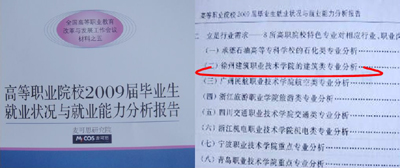 最后,《高等职业院校2009届毕业生就业状况与就业能力分析报告》指出,“可见,徐州建筑职业技术学院对建筑行业有着良好的人才数量和质量供应,办学特色比较明显。”