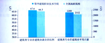 “徐州建筑职业技术学院2009届建筑类专业毕业生在建筑行业就业的比例为67.6%,略高于全国高职院校2009届建筑类专业这一指标(66.3%);徐州建筑职业技术学院2009届建筑类专业毕业生在建筑行业的半年后月薪为2280元,略高于全国高职院校2009届建筑类专业这一指标(2112元)。”