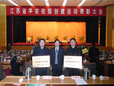 4月20日至22日,江苏省教育厅等部门在南京会议中心联合召开会议,分别总结表彰2009年“江苏省和谐校园”、“江苏省平安校园”创建工作及审计工作,并为获奖单位授牌。我校荣获“江苏省和谐校园”、“江苏省平安校园”、“江苏省审计工作先进集体”荣誉称号。我校党委副书记吴光林、副院长任留钦及宣传部、保卫处、审计处负责同志参加了会议并接受奖牌。