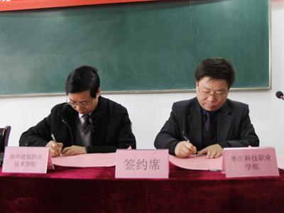 为更好地发挥淮海经济区高职院校协作会作用,增进我校与枣庄科技职业学院的相互交流,共同培育高水平人才,3月6日,“徐州建筑职业技术学院——枣庄科技职业学院合作交流启动仪式”在枣庄科技职业学院举行。我校任留钦副院长与枣庄科技职业学院谷道宗副院长共同签订了合作协议,并分别讲话。