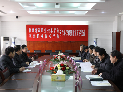 为了响应教育部示范院校建设计划,推进高职院校之间的深度合作,实现校际之间资源共享,优势互补,2月3日,我校与亳州职业技术学院签订联合办学框架协议,双方将在专业建设、师资培养、科研与教学管理、干部培养及文化社团交流等方面展开合作,每年双方还就具体事宜再行商定实施方案。