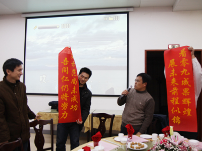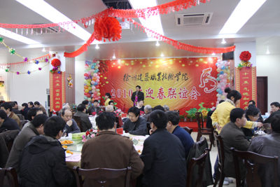 在随后的联谊活动中,党委书记王旭善致祝词,12个二级学院党政领导表态发言,大家以游戏、唱歌等多种形式进行座谈联谊,共叙友情迎新春。座谈联谊由建筑装饰艺术学院党总支书记梁惠和团委副书记张衡宇共同主持。
