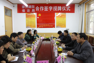 10月16日下午,我校人文与社会科学系与徐州市信访局在人文系会议室签订合作协议书并举行实习基地揭牌仪式。徐州市信访局局长刘立纲、副局长李永林等一行八人出席本次活动。我校副院长张登宏、人文系党政领导和部分教师参加了签字仪式。