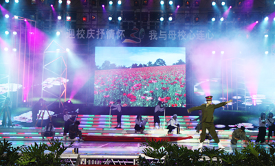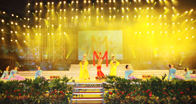 我校领导王旭善、袁洪志、吴光林以及各级领导机关有关部门领导、省内外兄弟院校领导、企事业单位领导、社会各界的来宾、朋友、徐州建院原校级老领导、离退休老教师、历届校友、在职教职员工和学生代表观看了演出。本场演出同步在操场上进行了现场直播,几千名师生观看了直播。