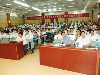 7月6日,教育部职业技术教育中心研究所学术委员会秘书长、国家示范性高职院院校课程开发与教学资源协作组组长、姜大源教授在我校学术报告厅作了题为《工学结合的高职课程开发——关于工作过程系统化课程的开发方法及案例》的学术报告。我校以及来自南京交通职业技术学院、常州建设高等职业技术学校、铜川职业技术学院、九州职业技术学院、枣庄职业技术学院等兄弟院校的400余名教师参加了此次培训。报告会由副院长季翔主持。