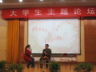 在全校深入开展学习实践科学发展观活动之际,我校广大团学干部、团员青年也积极加入到活动中来,4月9日晚,“学校建设示范,喜迎三十华诞,建院学子咋办”大学生主题论坛在学术报告厅开讲。