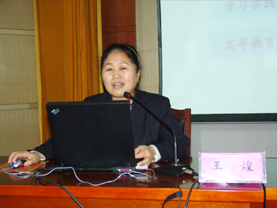 王煌处长分别从明确高等职业教育发展的宗旨,借鉴国际高等教育发展的趋势,把握高职发展的成效,推进高职教育发展的举措等方面,详尽阐释了党和国家对教育发展的要求以及世界高等教育发展的总体趋势等,并对我院近年来,在教育教学改革、精品课程建设、师资队伍建设、创建国家示范性高职学院等方面取得的成就给予高度评价。参加报告会的党员教师们都感到深受鼓舞。