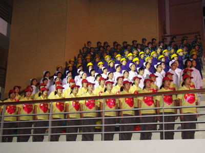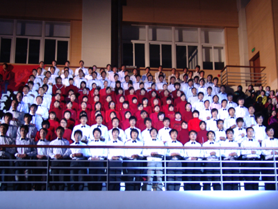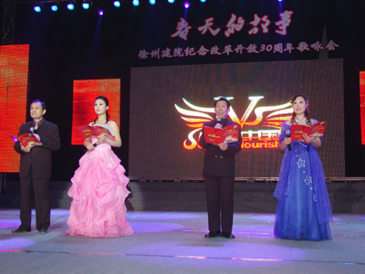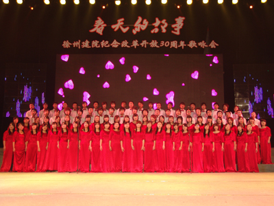 整场晚会分为改革颂、和谐颂、祖国颂三个篇章。演员们以朗诵、独唱、合唱等多种艺术形式,深情演唱了《你从春风中走来》、《我爱你,中国》、《大海啊,故乡》、《黄土高坡》、《年轻的朋友来相会》等十几首振奋人心的歌曲,热情讴歌了改革开放30年的辉煌成就,抒发了对伟大祖国三十年翻天覆地变化的自豪心声。 整场晚会感情真挚、荡气回肠,每一首歌曲,每一段朗诵都引起了现场观众的强烈共鸣。观众被动听的歌声感染着,被澎湃的激情感染着,同学们既是观众又是演员,台上台下交相辉映,歌声掌声响成一片,整个体育馆都沉浸在一片欢声笑语中,充分展示我院学生昂扬向上、锐意进取的精神风貌。