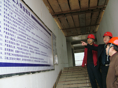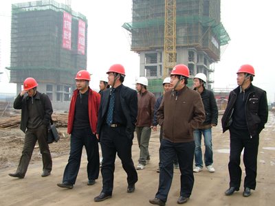 13日下午,在龙信集团副总经理沈宏生的陪同下,袁洪志一行参观了龙信集团首开·理想城项目部,并看望了在项目工地就业实习的我院学生。袁院长代表学院并以一名老师的身份勉励同学要珍惜在龙信集团就业实习的机会,要认真学习龙信集团先进的经营管理理念和施工技术,要做到能吃苦、讲诚信、服从管理、爱岗敬业,以自己的工作业绩来回报社会、企业、父母和学校。
