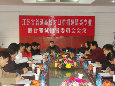 为进一步贯彻落实《江苏省教育厅关于2008年普通高校对口单独招生工作的通知》(苏教职[2007]30号)文件精神,2008年1月6日,由我院牵头召开了建筑类专业联合考试指导委员会成立大会。会议民主推荐产生建筑类专业联合考试指导委员会主任、副主任及委员,我院袁洪志院长当选为主任。会议讨论制定了联合考试指导委员会工作职责,并对《2008年对口单招建筑类专业综合技能考核标准》(草案)进行研讨修改,一致同意将联合考试指导委员会工作职责和修改后的《2008年对口单招建筑类专业综合技能考核标准》上报省教育厅审核并予以公布。