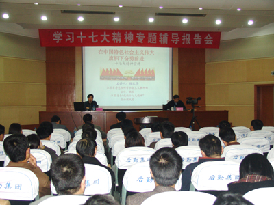 11月13日下午,我院在学术报告厅召开了学习十七大精神专题辅导报告会。江苏省委党校科学社会主义教研部主任、江苏省委“党的十七大精神”宣讲团成员徐民华教授应邀作了题为《在中国特色社会主义伟大旗帜下奋勇前进——十七大精神宣讲》的专题辅导报告。党委书记王旭善主持了报告会,院领导吴光林、季翔、任留钦与全体教职工党员、专兼职辅导员、相关系部教师、机关全体人员、民主党派负责人一起听取了报告。