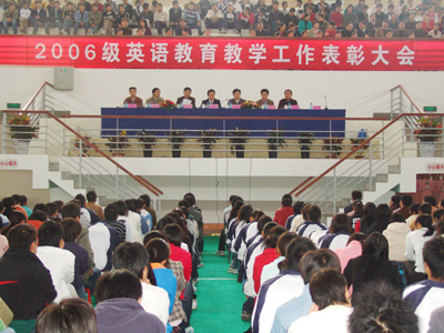 金玲代表受表彰的同学作了如何学英语的发言,获得“英语教学优秀奖”的教师代表王亚薇作了如何教的发言,“英语教学优秀组织奖”的系代表人文系黄立营主任从组织、管理的角度进行了细致、深入的大会交流。