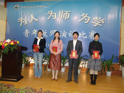 老师们的演讲,或激情洋溢,或深情满怀,精彩纷呈,高潮迭起,既赢得了阵阵掌声,也引发了大家的思考,一段演讲就是一种追问,师德的境界是什么?师德的内涵是什么?我们应该追求什么……提问发人深省。一段演讲也是一种回答。责任重于泰山,追求终生无悔……回答掷地有声。比赛结束,机关党总支选送的