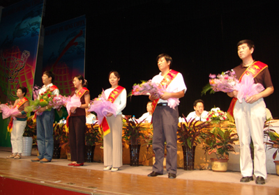 院党委王旭善书记宣读了表彰决定。在喜庆的乐曲声中,全国优秀教师、江苏省教学名师、江苏省青蓝工程培养对象、院优秀教师、优秀辅导员、优秀班主任和优秀教育工作者依次上台接受表彰。经济管理系