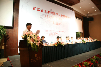 本次会议以“建筑的可持续发展与地域文化”为主题,分为生态、可持续发展建筑研究,现代建筑与地域文化等五个分议题。大会学术主持为江苏省建筑师学会会长仲德崑教授,我院副院长季翔教授级高级建筑师和徐州市建筑设计研究院有限公司董事长张玉喜高级建筑师。中国建筑学会副理事长、中国建筑设计研究院总建筑师、全国设计大师崔恺教授,清华大学建筑设计研究院院长、博士生导师庄惟敏教授,深圳建筑设计研究总院总建筑师、全国设计大师孟建民教授,江苏省建筑师学会会长仲德崑教授,徐州市建设局局长方彭教授,我院副院长季翔教授级高级建筑师等建筑大师和专家作了十二场高水平学术报告,引起较大的轰动。最后,江苏省建筑师学会会长仲德崑教授对本次会议进行了总结和评价,他认为本次学术年会是历年来学术水平最高、专家层次最高、规模最大、办的最好的一届,为江苏省建筑创作和建筑师业务水平的提高起到了很好推动作用。