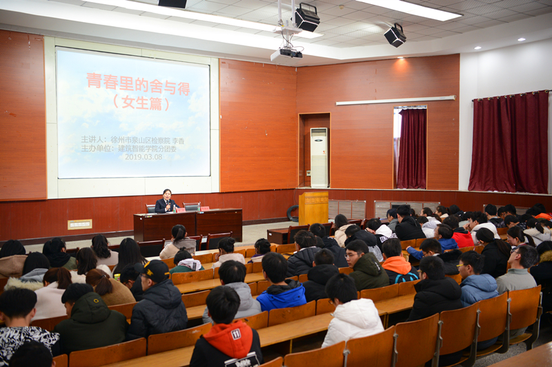 3月8日,建筑智能学院在大学生发展中心多厅二举行了“3.8女生节”法律知识讲座,此次宣讲以“青春里的舍与得”为主题,特邀江苏省检察机关普法宣讲团成员、泉山区人民检察院刑事检察科李香科长主讲。李香以办理的真实案件为例,为现场200余名大学生进行了普法教育。讲座中,李香分析了女性在生活中可能遇到的危害及规避化解方法,强调女大学生应该掌握法律知识,树立安全意识。互动环节中,李香耐心解答了同学们提出的问题。