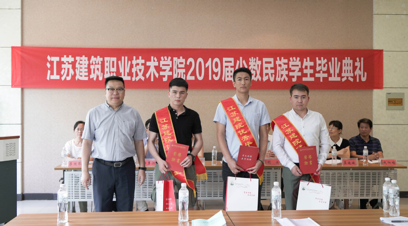 典礼上,教务处副处长王峰宣读《关于授予2019届少数民族优秀毕业生称号的决定》文件。刘海波向获得2019届少数民族优秀毕业生的3名同学颁发了荣誉证书和奖品,并向全体少数民族毕业生赠送了纪念品。