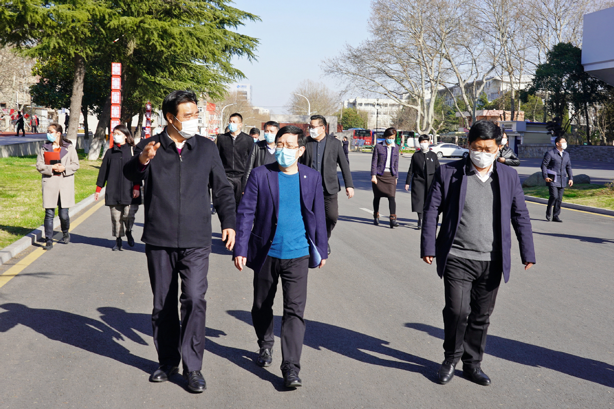 3月19日下午,江苏省学校疫情防控徐州片区专项督导检查组,在江苏省教育厅党组成员、机关党委书记汪国培带领下一行六人,就我校疫情防控保障工作进行实地督导检查。徐州市教育局副局长李清、徐州市教育工委副书记刘艳,校领导孙进、沈士德、梁惠、魏勇、曾凡远、刘海波、蒋兆峰及党政办公室、学工处、保卫处、后勤中心等负责同志陪同检查。