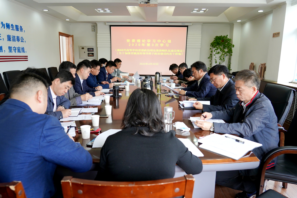 4月30日上午,校党委理论学习中心组在第一会议室召开学习会议,集中学习《关于加强省属高校领导班子政治建设的若干措施》《新时代高等学校思想政治理论课教师队伍建设规定》等文件精神。党委书记孙进教授主持学习会并作主讲发言,校党委理论学习中心组成员参加了学习。