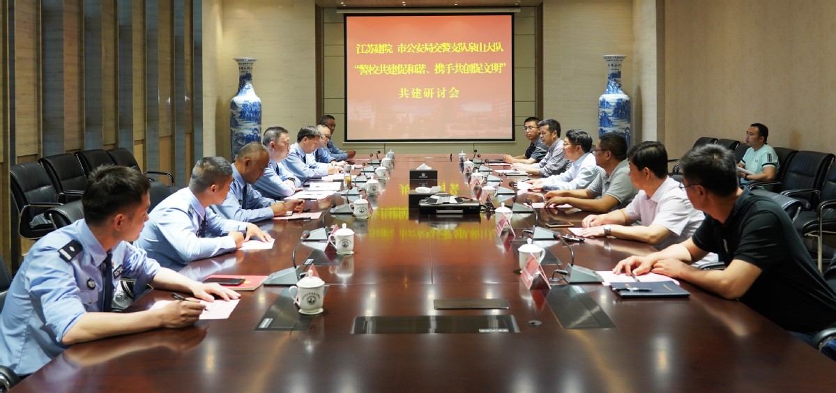 5月21日下午,我校与徐州市公安局交警支队泉山大队开展的“警校共建促和谐、携手共创促文明”共建研讨会在我校图书馆会议室举行。市公安局交警支队党委委员兼泉山大队大队长郭挺、教导员张军,院长沈士德教授出席了活动。会议由副院长蒋兆峰主持。