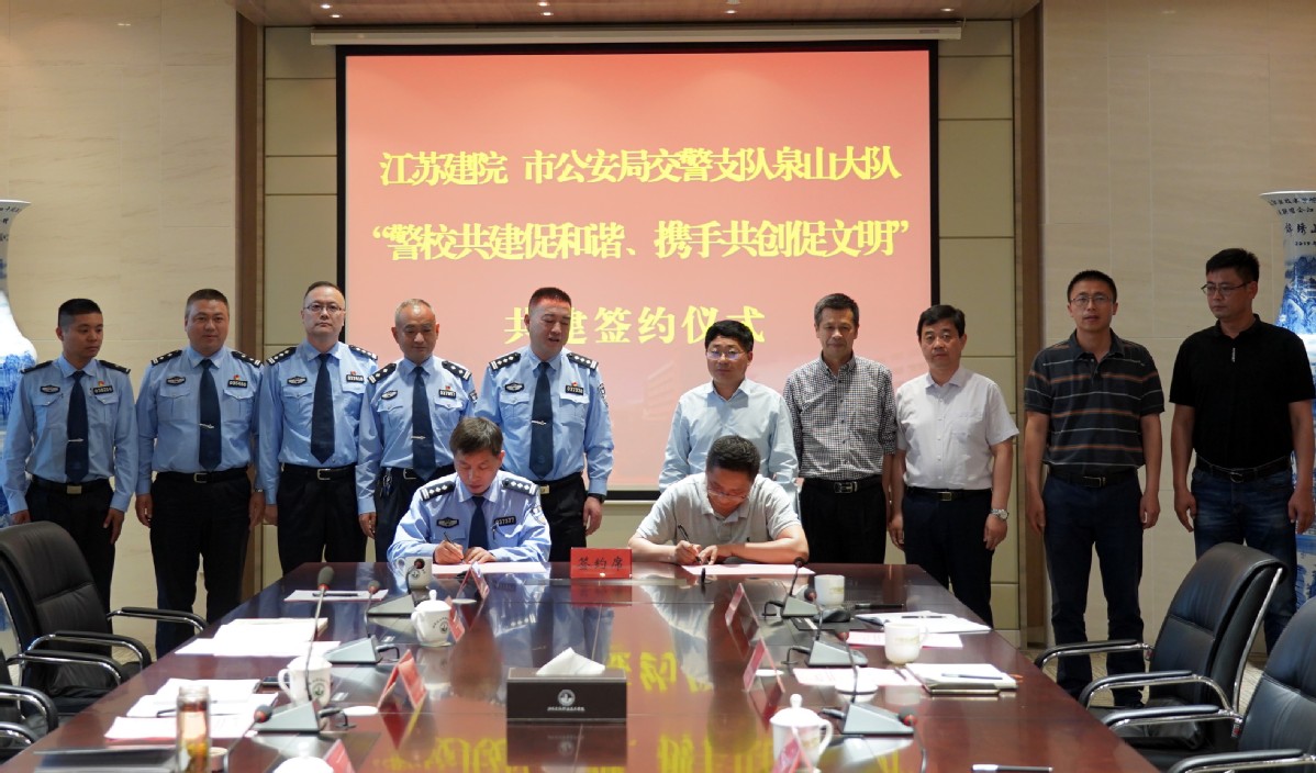 研讨会上,沈士德代表学校向泉山交警大队对我校一直以来的关心和帮助表示感谢,并介绍了学校党建工作和高质量内涵发展情况。郭挺介绍了泉山大队的党建情况,强调了警校共建的重要性,提出了警校共建的相关举措。随后,双方签订了共建协议书。
