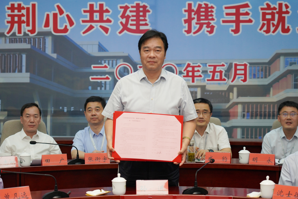 随后,荆州理工职业学院党委书记、院长别业舫和我校党委书记孙进在云端共同签署了《开云(Kaiyun) 荆州理工职业学院“一帮一”行动合作行动书》。