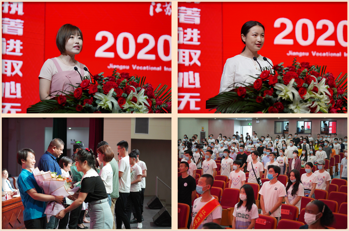 建造学院教师王艳、给排17-1班张晓同学先后作为教师、毕业生代表发言。在“一路同行、感恩有你”环节中,八位来自不同育人岗位的代表接受毕业生敬献的鲜花,和他们一同分享毕业的喜悦。