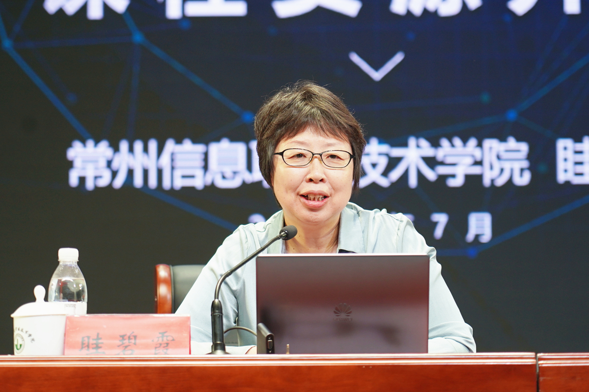 本次培训邀请常州信息职业技术学院眭碧霞教授和常州工程职业技术学院邹娜娜老师来校做专题报告。眭碧霞教授的《在线开放课程建设与课程资源开发》解读了职业教育在线精品课程建设规范的变化、在线课程资源建设方法、国家级在线课程申报要点等内容,对我校教师在线精品课程建设能力、资源建设能力、线上线下混合式教学实施能力提升起到了显著的促进作用。邹娜娜老师的《课程层面诊改实施策略——以基础会计诊改为例》聚焦课程教法和实施路径,从SWOT分析、课程两链打造、8字质量改进螺旋建立与运行、云课堂实时性诊改等方面,对课程教学的有效性评判和改进给出了样板。