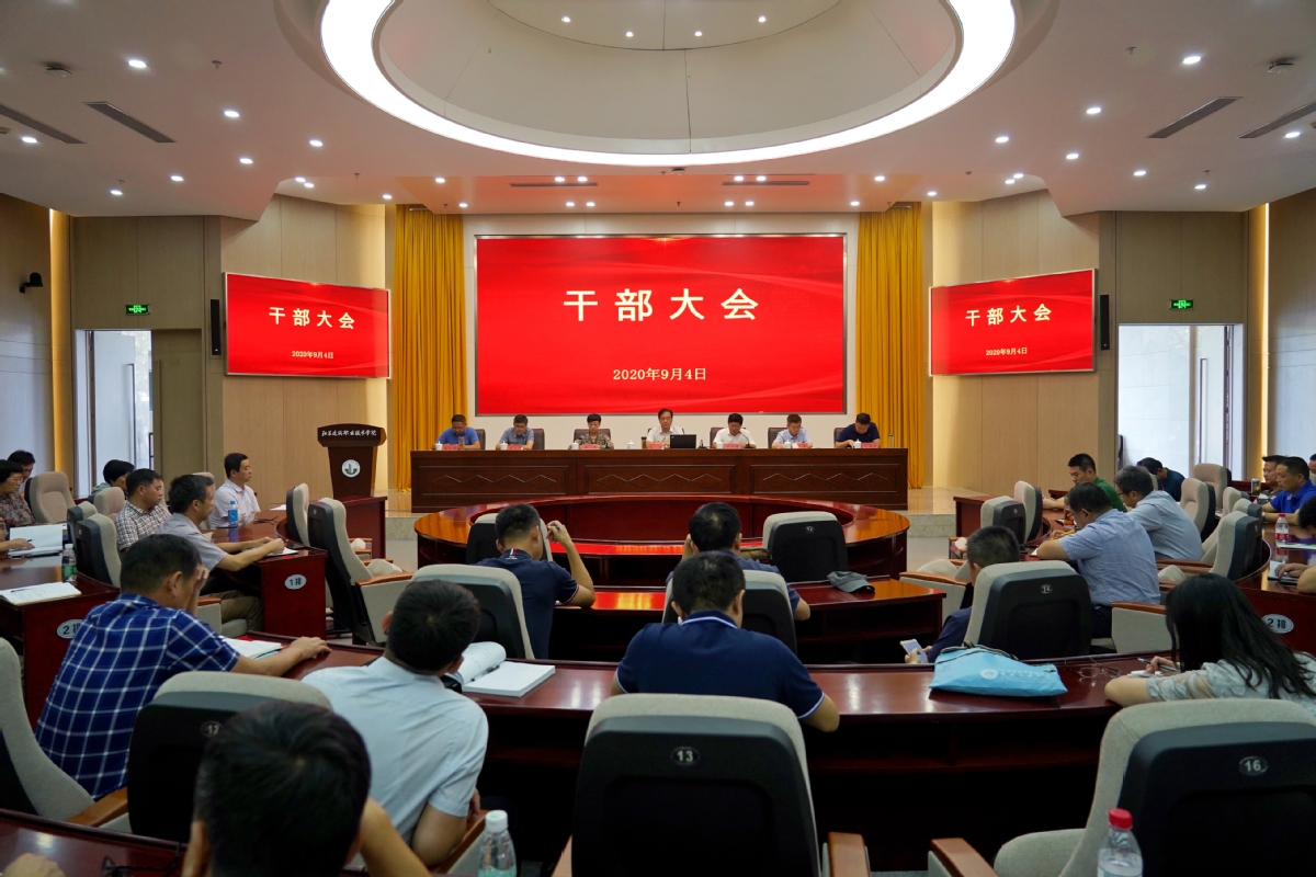 9月4日下午,学校召开新学期干部大会,总结2020年上半年取得的工作成绩,安排部署学校下半年重点工作。校领导孙进、沈士德、梁惠、魏勇、曾凡远、刘海波、蒋兆峰出席会议,全体副科级以上干部、专业主任参加会议。党委副书记梁惠主持会议。