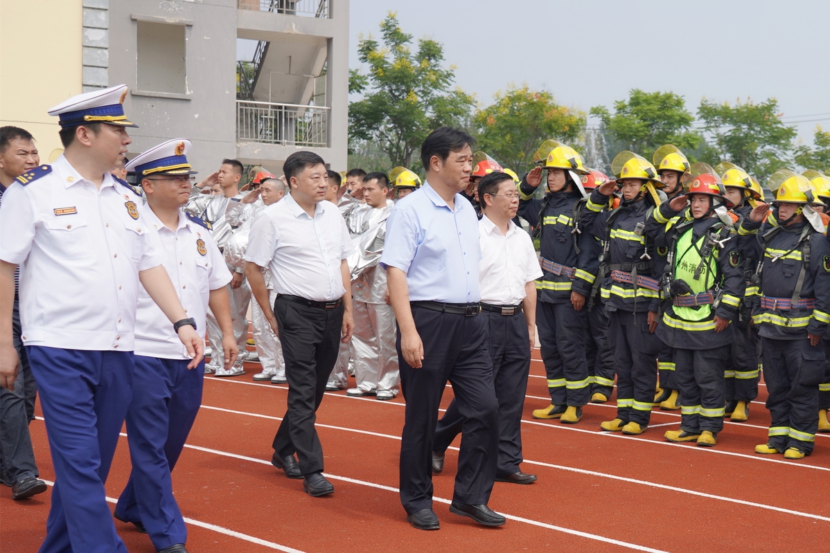 仪式结束后,与会领导一起参观了车辆装备器材,观摩了实战化演练。