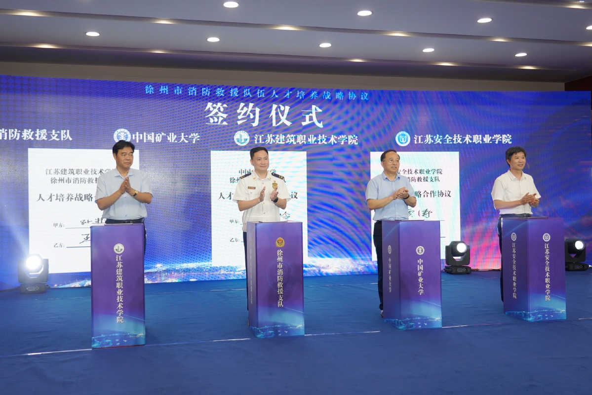 9月16日,徐州市消防救援队伍人才培养战略在徐州市消防救援支队举行。徐州市消防救援支队与中国矿业大学、开云(Kaiyun)、江苏安全技术职业学院三所高校签订消防救援队伍人才培养战略协议。我校党委书记孙进教授出席签约仪式并签订人才培养战略合作协议。