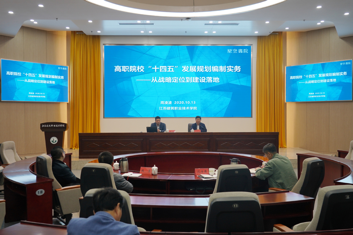 星空书院院长周凌波应邀对全体参会人员做了题为《高职院校“十四五”发展规划编制实务——从战略定位到建设落地》的专题培训,系统分析了政策把握、战略规划对编制工作的重要影响,介绍了规划的科学编制方法,并对我校“十四五”规划的编制工作给出具体建议。