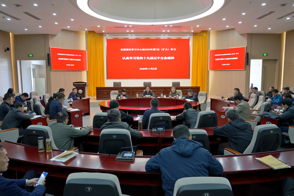 11月3日上午,学校党委理论学习中心组在学术报告厅召开2020年第7次(扩大)学习会,集中学习党的十九届五中全会精神、《关于加强高校党的政治建设的若干措施》、《中国共产党基层组织选举工作条例》、《思政课是落实立德树人根本任务的关键课程》。党委书记孙进教授主持会议并作主讲发言,校党委理论学习中心组成员及全体中层干部正职参加学习。