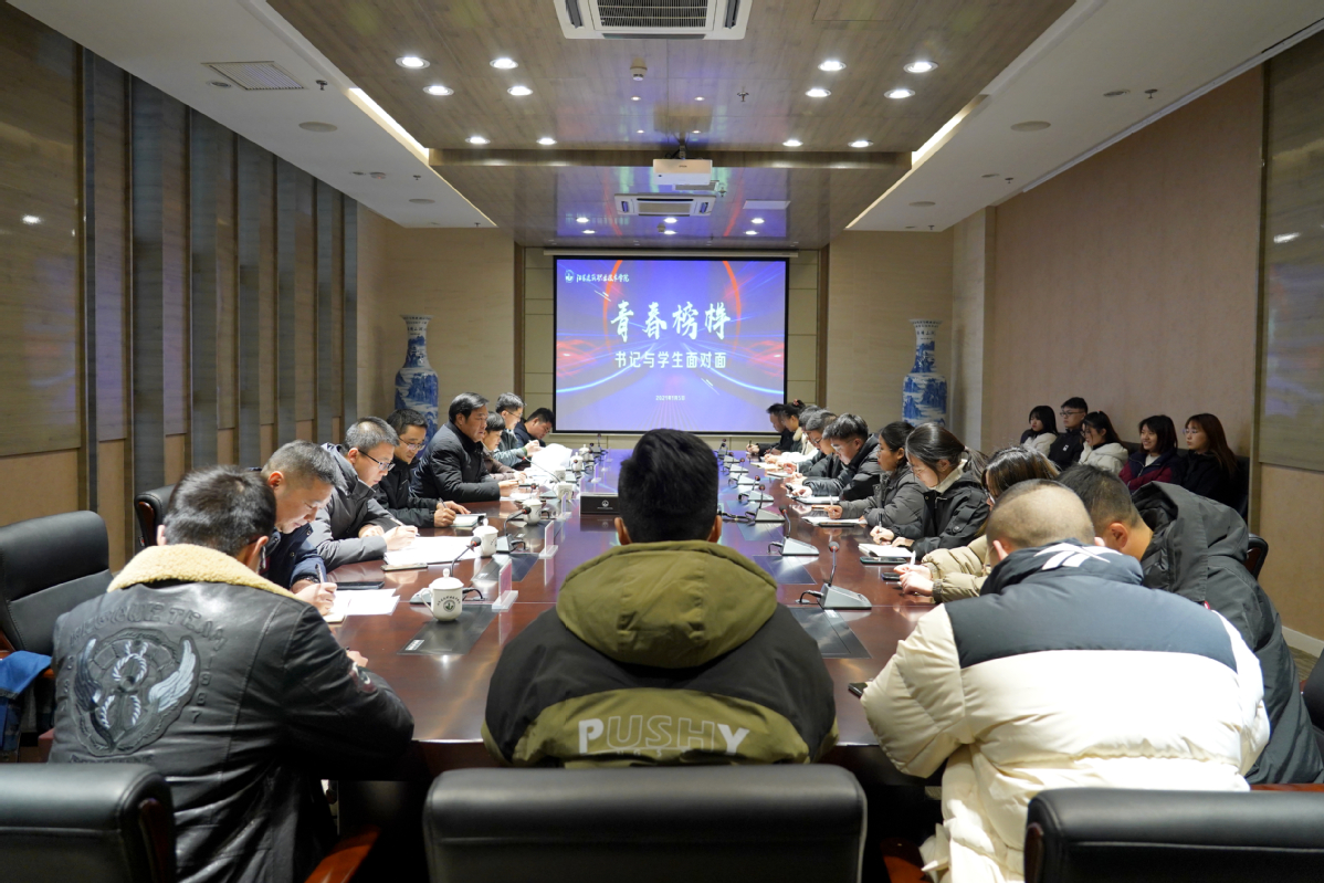 1月5日下午,我校组织了“青春榜样——书记与国奖学生面对面”座谈会。党委书记孙进教授、党委副书记梁惠,教务处、学工处、保卫处、后勤中心、团委等部门负责人,23名2020年国家奖学金获得者参加了座谈会。