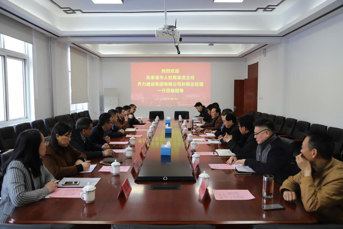 3月22日下午,建筑智能学院与张家港人社局就校地合作事宜进行深入交流,并与齐力建设集团有限公司举行校企合作签约仪式。张家港市人社局市人力资源市场服务中心副主任徐浩、齐力建设集团总经理孙祺,我校招生与就业处、校企合作处、建筑智能学院负责人及部分教师参加了活动。
