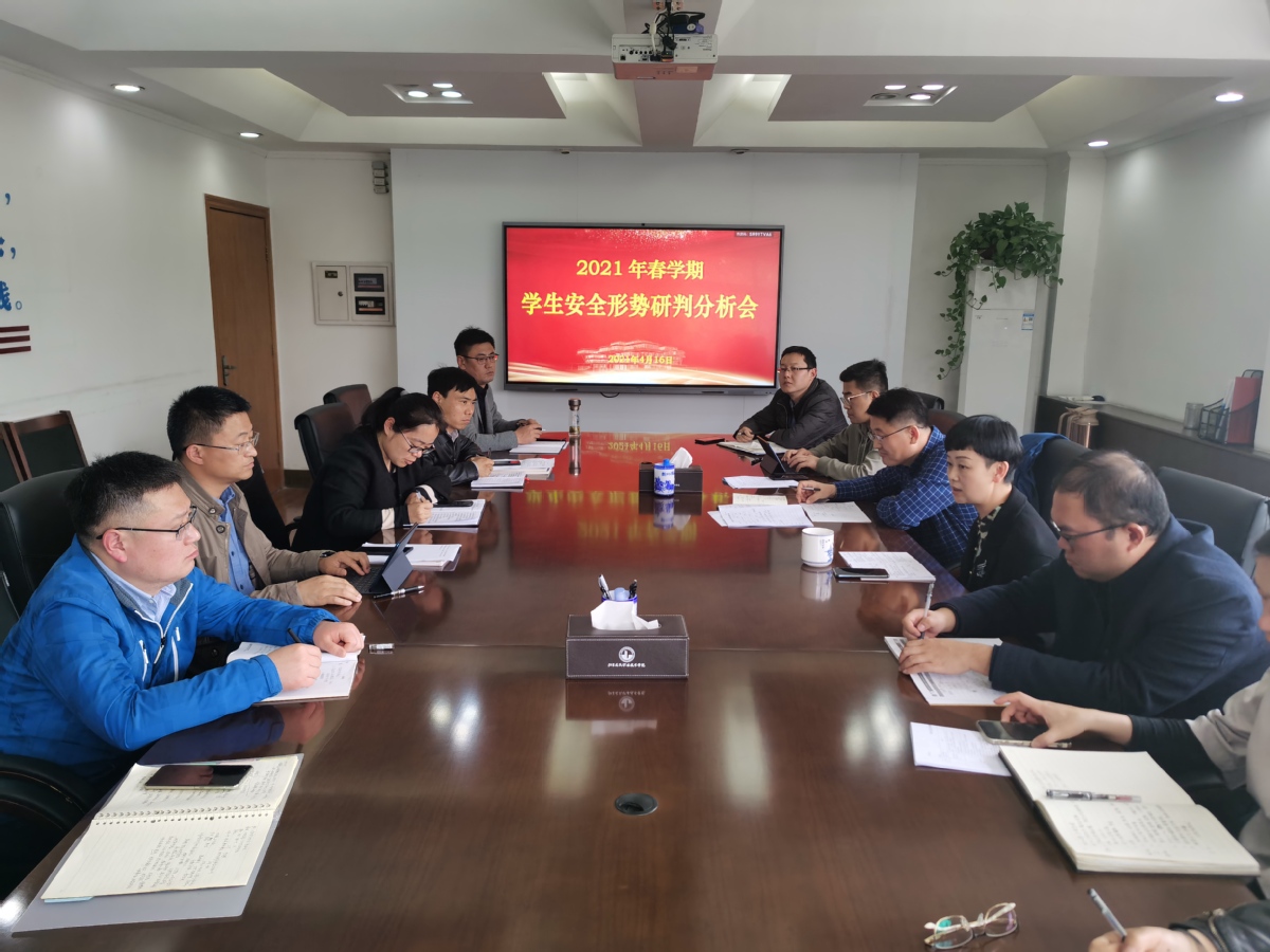 会议学习传达了《省教育厅办公室关于加强学校安全防范学生极端事件的通知》,学生处、教务处、保卫处和各二级学院分别汇报了分管领域学生安全风险分析研判和处置工作情况。